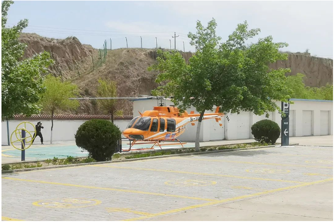 5月19日,随着“隆隆”的声音由远近,带有秦汉救援”标识的直升机飞进朱家峁煤矿上空,并分别在生产区广场、生活区地面起降标志处,开始了悬停、起降测试。这是该矿与秦汉救援合作,为快速、高效、及时应急救援,提升航空应急处置能力的首次起降测试。