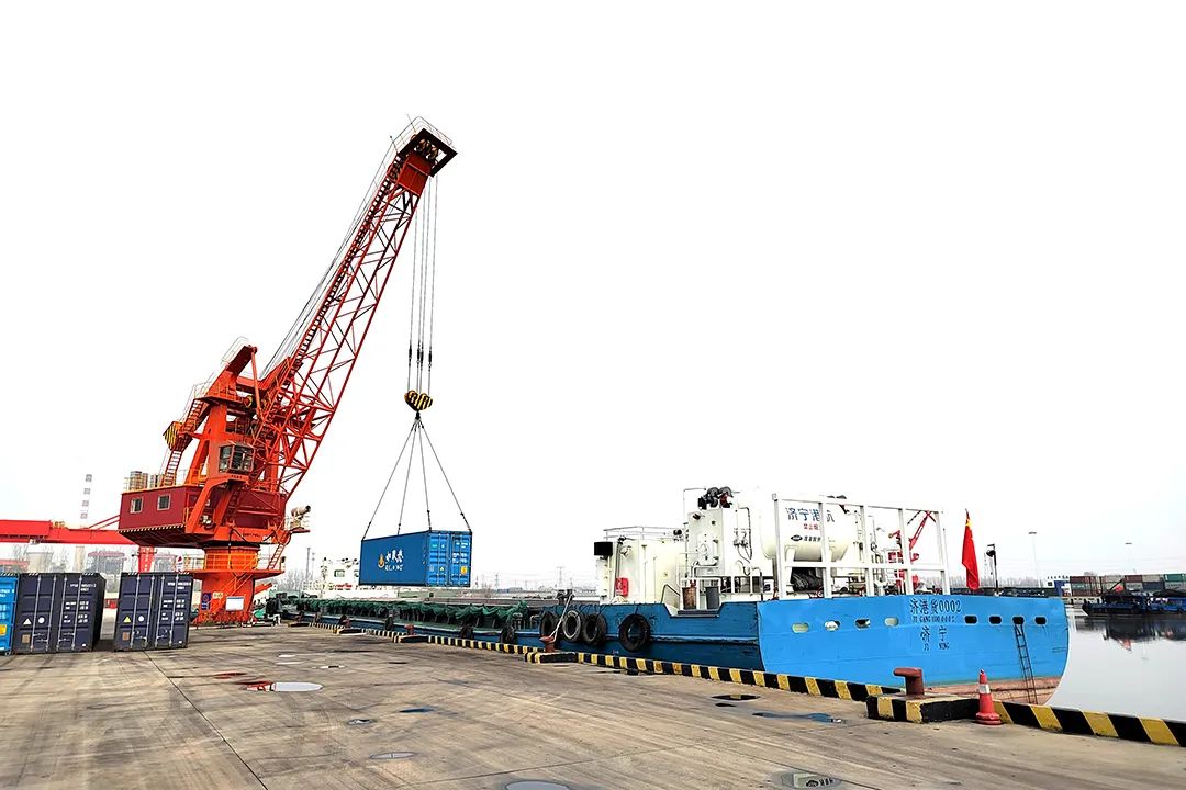 2月11日,一艘济宁能源中交润杨新能源货船,载着40HC集装箱缓缓驶入跃进港5#号泊位,这是节后开工以来,跃进港迎来的第一艘大型集装箱货船,跃进港大型集装箱装卸运输业务迎来新年“开门红”。