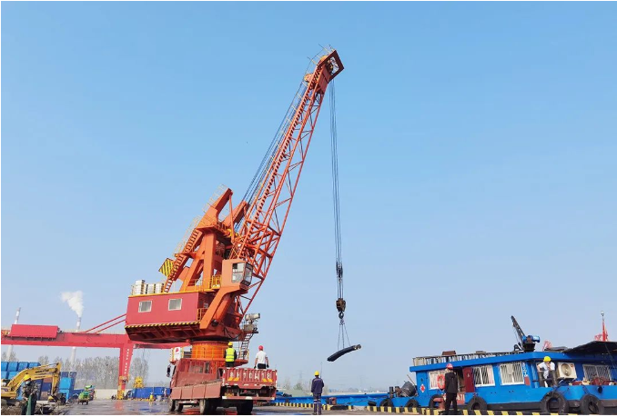此次业务合作是跃进港30T吊机首次接卸钢材业务。30T吊机舒展长臂将一件件钢材轻巧地从货船上吊运至运输车辆上,整条装卸流程一气呵成,实现了钢材业务从无到有的突破。跃进港人以“争一流、争第一、争唯一”的精气神,不断提高港口作业效率和服务质量,奋力做好“打造千亿级集团”的答卷人。