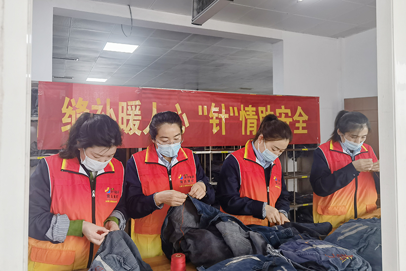 活动现场,女工协管员们聚集在一起,拿起手里的工作服,仔细检查纽扣是否缺损、衣服是否破损,然后聚精会神的穿针引线,钉扣、缝补、裁剪、有的讨论怎么缝补更结实,有的讨论怎么打补丁,一心一意,用娴熟的双手将职工破损的衣服修补完好,将安全的嘱托和平安的祝福伴随着缝补的过程一起渗透进去,为职工送去一份贴心关怀,助力企业安全生产。