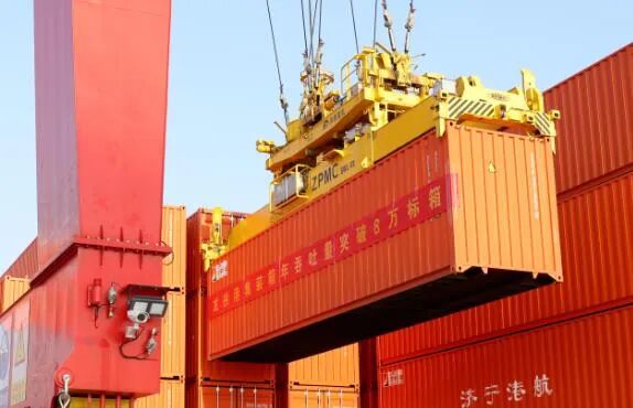 8月31日上午10时26分,龙拱港7#岸桥将一个装满玉米淀粉的集装箱顺利装进“润杨集6789”船舶,标志着龙拱港今年集装箱吞吐量突破8万标箱,是去年全年2.04万标箱的3.9倍,提前4个月完成全年计划任务,强力助推济宁港航集装箱吞吐量攀升。